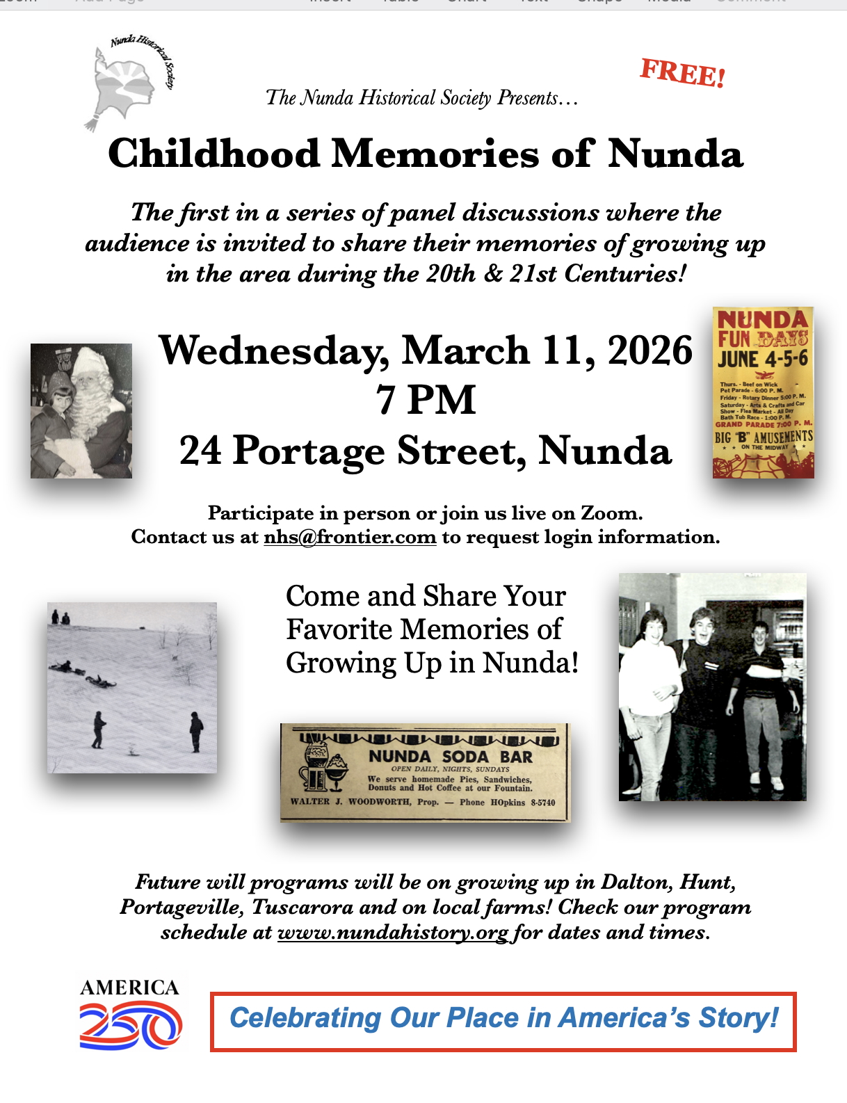 Wednesday, March 11th at 7 PM; The NHS presents "Childhood Memories of Nunda"
