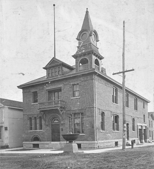 Right: This image of Nunda's first municipal building was appeared on a local calendar only a few years after the building opened in 1900. Note the bell tower and the fountain that once stood in front of the building.